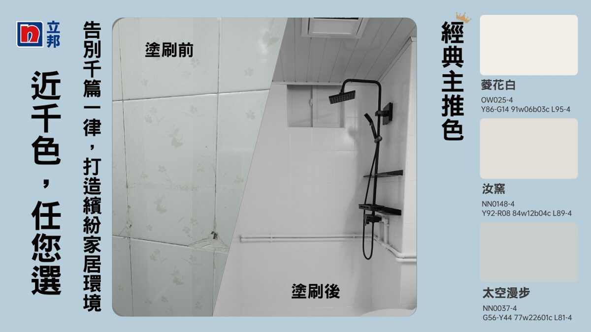 立邦水性磁磚漆,對(duì)老舊發(fā)黃、發(fā)霉變黑的衛(wèi)浴空間具有超強(qiáng)翻新改色效能